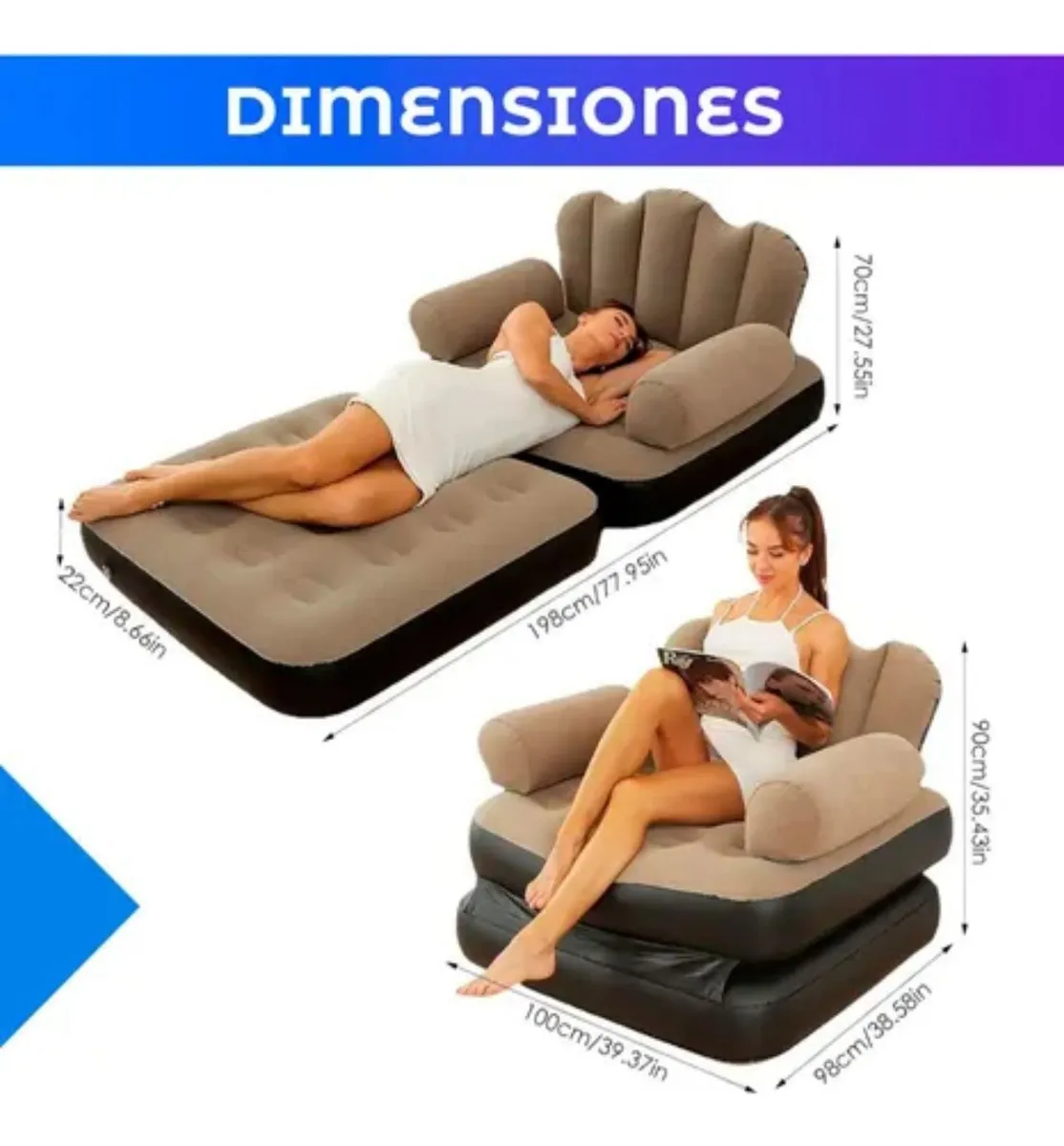 - Tamaño aproximado del sillón inflado 100 cm x 98cm x 90 cm APROX